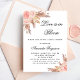 Für ein modernes bohisches Brautparty. Ein stilvoller weißer Hintergrund. Die Einrichtung ist mit Rose-Gold und rosa Blumen, Rose und Pampas-Gras dekoriert. Personalisieren und fügen Sie einen Namen und Party-Details hinzu. Text: Liebe ist in Bloom