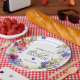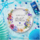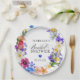 Lila, blaue und rote Blumenblumen schaffen einen hübschen Rahmen. Die Kalligraphie fügt elegante und weibliche Touch hinzu. Das lila Herz gibt ihm eine süße Touch von Romantik.