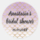 Personalisierter Rundaufkleber für ein Brautparty. Dieser Glam-Aufkleber ist mit einem eleganten Schwarz-Schreiben und einem allbernen lila lila und goldenen mermaid Glitzer Glitzern Hintergrund ausgestattet. Sie können es mit Ihrem Namen und Brautparty-Datum personalisieren. Sie können sogar die Textfarbe und den Stil des Schriftartes mit der Option Anpassen ändern.