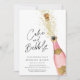 Rosa und Gold Champagner Kuchen und Bubbly Bridal Dusche Einladung. Entworfen mit einer schönen Aquarell Champagner Flasche. Passende Artikel in unserem Shop Cava Party Design.