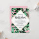 Brautparty Palm Einladungen - mit Blätter aus Palmen auf rosa Hintergrund dekoriert.