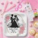 Eine Bridal-Square-Papiertafel für Brautpartys, die mit Hochzeitscouchen in Goldrahmen mit rosa Rosen umrahmt sind, können Sie personalisieren