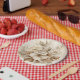 Eine schöne Papiertafel aus Brautparty in einem monotonen, braunen Aquarell-Blumenmuster.