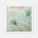 Diese Serviette wurde für die Hochzeitskollektion und das Dekor des Brautparty-Party Set aus Teller, Servietten und anderen Empfang-Dekorationselementen geschaffen und verfügt über luxuriöse, alte Hollywood-Wesensmerkmale. Aus handgemalten Kunstwerken von Audrey Jeanne Roberts, vermischt mit Vintagen barocken Imitaten vergoldete Scroll Swirl Schnörkel, die ursprünglich aus den dekorativen Schmuckstücken des Druckers. Der Hintergrund ist ein subtiles Waschgemälde, das von sanftem Himmelblau bis Aqua, Minze und eine Touch von grauem Schieferblau variiert. Ein Paar helle und farbenfrohe Pfauenfedern komplettieren das Design zusammen mit den Namen Ihrer Braut und Bräutigam und dem Hochzeitstag. Alle Rechte vorbehalten.