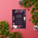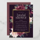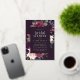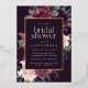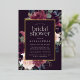 Die Blumen-Braudusche lädt mit einer lila bordeauxroten Marsala, Rosa und dustigen blauen Blumen, üppigem botanischem Blattwerk, Grün und Goldfolien ein. Personalisieren Sie mit Ihren Brautparty-Details in modernen Schriften auf einem dunklen lila Hintergrund.