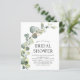 Feiern Sie die Braut-in-Stil mit unserer wunderschönen eukalyptus Brautdusche Einladung. Dieses wunderschöne Design mit eleganten Eukalyptus-Blätter vor einem sanften, neutralen Hintergrund macht es zur perfekten Wahl für ein botanisches Brautparty. Mit unserer atemberaubenden Eukalyptus-Brautdusche machen Sie den besonderen Tag der Braut noch unvergesslicher. Mit seinem schönen Design und seinen individuell anpassbaren Optionen ist es der perfekte Weg, die Freude und Spannung der kommenden Neuheiten mit Familie und Freunden zu teilen. Bestelle noch heute!