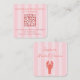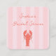 Whimsikaler, handgezeichnet, rot-orangefarbener Hummer vor einem rosa gestreiften Hintergrund für dieses einladende Gehäuse-Kartendesign, das auch einen QR-Code enthält. Sie können dies verwenden, um den Registrierungslink oder die UAWG zu setzen.