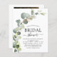 Feiern Sie die Braut-in-Stil mit unserer wunderschönen eukalyptus Brautdusche Einladung. Dieses wunderschöne Design mit eleganten Eukalyptus-Blätter vor einem sanften, neutralen Hintergrund macht es zur perfekten Wahl für ein botanisches Brautparty. Mit unserer atemberaubenden Eukalyptus-Brautdusche machen Sie den besonderen Tag der Braut noch unvergesslicher. Mit seinem schönen Design und seinen individuell anpassbaren Optionen ist es der perfekte Weg, die Freude und Spannung der kommenden Neuheiten mit Familie und Freunden zu teilen. Bestelle noch heute!