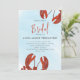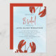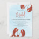 Dieses Design verfügt über eine einfache Aquarell-Brautdusche-Einladung, mit einem QR-Code für die Website-Online-Webseite für Social Media-Events URL, mit einem nautischen Hummer-Boil-Bake-Party, einem Küstenmeer, der für das Party von Meeresfrüchten ideal ist, einem stilvollen Typografie-Schriftart, einer modernen Kalligrafie-Schrift mit Maryland New England Maine gebackene, weiche Hummerbeine, ein elegantes und lustiges Wassermeer mit einem roten, krustentischen Tier, blaues Wasser, Ozean, Segel-Segel-Einladung