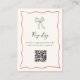 Diese QR-Code-Gehäuse-Karte koordiniert mit unseren Dolce Vita Brautduschen-Einladungen für eine schöne italienische inspirierte Angelegenheit. Das Design zeichnet sich durch handgeschriebene, kursive Schriftzeichen aus, die mit einem rosa, wellenförmigen Bändchen und einer grünen, von der Hand gezeichneten Bogen-Abbildung für einen sommerlichen Amalfi-Küstenlook akzentuiert sind. Personalisieren Sie die Registrierungsinformationen der Braut, einschließlich eines benutzerdefinierten QR-Codes.
