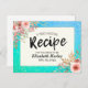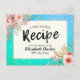 Brautparty Rezept Card Vorlagen - Elegantes Schreiben und Vintage Watercolor Rosa Blume auf Türkis Aquamarin Blue Green und Imitate Gold Foil Confetti Polka Dots Hintergrund. Ein perfektes Design für Ihren großen Tag. Alle Textstile, Farben, Größen können an Ihre Bedürfnisse angepasst werden!