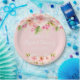 Eine rustikale Papiertafel für ein Brautparty. Mit zeitgenössischen rosa, pfirsichfarbenen und korallenfarbenen Dahlia-Blume. Ein mädchenhaft pastellfarbener Hintergrund. Der Name wird mit einem weißen handgeschriebenen Schrift geschrieben. Passende Papierservietten in unserem Shop erhältlich!