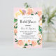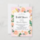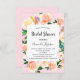 Eine trendige Brautdusche mit Blumen in Rosa, Rose und Weiß. Ein schicker, rosa Hintergrund auf der Vorderseite. Weiße Flora, Rose Gold, Rosa und Grünpflanzen. Die Einrichtung ist mit großen, üppigen Blume in Aquarelltönen gestaltet. Personalisieren und fügen Sie den Namen der Braut und Party Details. Schwarzer Text. Zurück: rosafarbener Hintergrund.