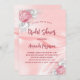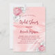 Elegante, klassische, glamouröse und mädchenhafte Brautdusche. Rosa Satin, seidenseidenes Ambiente, rosa und weiße Blumen. Personalisieren und fügen Sie einen Namen und Party-Details hinzu.