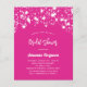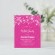 Ein warmes rosa Hintergrund. Mit weißen Sternen dekoriert. Weißer Text. Personalisieren und fügen Sie einen Namen und Party-Details hinzu. 1 Blatt = 1 Einladung mit Druckkante bis Kante.