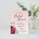 vorne: Eine moderne und elegante Brautdusche. Eine Rose Gold ombre Aussehen Hintergrund. Die Blume sind lila und bordeauxrot und die Rose rosa. Vorlagen für den Namen der Braut, Datum und Ort der Dusche. Der Text: Brautparty wird mit einem großen handgeschriebenen Schrift geschrieben, mit schwarzen Buchstaben. Zurück: Rose goldfarbener Hintergrund.