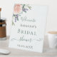 Für ein Brautparty. Ein schick weißer Hintergrund. Dekoriert mit einer Rose Gold und rot rosa Blumen, Blume (Rose) und Lavendel. Personalisieren und fügen Sie den Namen der Braut und ein Datum. Schwarz-Grün-Buchstaben.