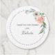 Ein trendiger, schlichter und eleganter Gefallen für ein Brautparty. Die Einrichtung besteht aus einem schlichten, wasserfarbenen Kranz aus Rose, die rosa und grün sind. Eleganter weißer Hintergrund. Vorlagen für den Namen und das Datum der Braut. Mit dem Text: Brautparty geschrieben mit einem handgeschriebenen Stil Skript. Graue Buchstaben. Zurück: Die gleichen Blumen wie die Vorderseite. Der Text: Danke, dass du gekommen bist! Liebe und Vorlage für ihren Namen.