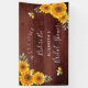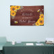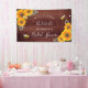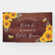Eine rustikal braune Holzstallmauer als Hintergrund. Mit hellgelben und orangefarbenen Sonnenblumen und glücklichen Hummeln dekoriert. Mit dem Text: Willkommen. Personalisieren und fügen Sie den Namen der Braut zu Biene. Der Text: Bride to Bee und Brautparty ist mit einem modernen, handgeschriebenen Stil geschrieben. Ideal als Party-Wanddekoration oder als Willkommensschild.