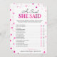Dieses moderne Bingospiel besticht durch einen rosa magentafarbenen Hintergrund mit metallischem Konfetti. Der Text ist in einer Mischung aus einem spielerischen Kalligraphie-Schriftart und einem modernen Serif-Schriftart geschrieben, diese Karte ist personalisiert mit dem zukünftigen Namen und dem Brautparty. HINWEIS: _________________________________________________________________________________ Die metallische Farbe ist keine reale Folie. ein digitaler Effekt _____________________________________________________________________
