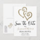 Brautparty Save the Date Khaki Linked Hearts Ankündigungspostkarte