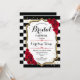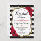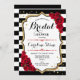 Brautparty - Schwarz-weiße Streifen Gold Rote Rose Einladung