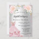 Eine moderne, stilvolle und glamouröse Einladung für ein Brautparty. Ein silbernes Imitat mit Glitzer aus rosa Imitaten, Glitzern, Kleid und Rosa Blumen. Der Name ist mit einem modernen handgeschriebenen Stilskript geschrieben. Personalisieren Sie Ihre Party-Daten und fügen Sie sie hinzu.