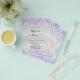 Bitte beachten Sie, dass diese Einladung auf Flyer Papier und sehr dünn ist. Umschläge sind nicht enthalten. Für dickere Einladungen (gleiche Gestaltung) besuchen Sie bitte unseren Shop. Ein modernes, elegantes Brautparty. Imitate silber metallisch mit violettem, lavenfarbenem Imitat Glitzer, Glitzern. Personalisieren und fügen Sie einen Namen und Party-Details hinzu. Schwarze Buchstaben.