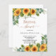 Weiße, mit Sonnenblumen geschmückte Kulisse, Eukalyptusgrün. Personalisieren und fügen Sie einen Namen und Party-Details hinzu.