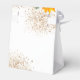Weißer Hintergrund mit Sonnenblumen, Eukalyptusgrün, goldenen Blätter und Imitaten goldener Glitzer Staub. Mit dem Text: Brautparty und Danke. Personalisieren und den Namen der Braut