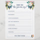 Romantisches Brautparty mit Blumen. Die Hintergrundfarbe ist anpassbar. Woll nicht, deine eigenen Brautparty-Spiele zu drucken, nutze diese Flyer stattdessen. Bestellen Sie die benötigte Menge; Brautparty Game "Was hat der Bräutigam gesagt?" Die prächtigen gemalten Blumen sind durch Erstellen der Schnitt. Finden Sie sie auf dem Creative Market https://crmrkt.com/7WdAX, Etsy https://www.etsy.com/shop/CreateTheCut und www.createthecut.com