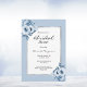 vorne: Ein klassisch staubblauer Hintergrund mit einem silbernen Imitat. Die Blumen sind mit Blume in Aquarelltönen geschmückt. Vorlagen für den Namen der Braut und die Einzelheiten des Party. Der Name und der Text: Bridal werden mit einem handgeschriebenen Stift geschrieben, schwarze Briefe. Zurück: staubiger blauer Hintergrund.