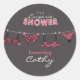 Dies ist der passende Aufkleber der Lingerie Dusche Einladung. Sie müssen nur die Texte auf der Karte ändern. Sie können die Texte vergrößern oder verkleinern, indem Sie auf "Anpassen" klicken.