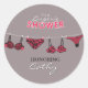 Dies ist der passende Aufkleber der Lingerie Dusche Einladung. Sie müssen nur die Texte auf der Karte ändern. Sie können die Texte vergrößern oder verkleinern, indem Sie auf "Anpassen" klicken.