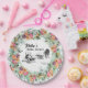So hübsch, dass Sie vielleicht nicht in der Lage sein, von ihnen zu essen, aber wenn Sie wollen, eine schöne Präsentation zu machen, diese Papier-Teller werden die Aufgabe! Diese wunderschönen Brautparty-Papier-Teller sind leicht zu personalisieren und sorgen für eine angenehme Dekoration in allen Brautpartys! Eine hübsche Aquarellblütengestaltung geht um den Teller herum und in der Mitte befindet sich ein weiblicher Kopf - im Profil, mit einem klassischen Teekessel und Teebechern und einem Blumenzweig.