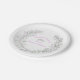 Zwei Blätter und Blume aus Thymian, die einen Kräuterkranz bilden, umkreisen die Teller aus Brautparty. Bearbeiten Sie diese Brautparty-Teller mit Ihrer eigenen Ehrenbride, um den Namen zu sein. Einzigartiges Kunstdesign von Sarah Trett.