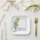 Hübsche quadratische Teller mit Zitronen, Kräutern und Oliven tragen den Namen der Braut und des Bräutigams. Eine tolle Ergänzung zur Tischdekoration des Brautparty. Entspricht meinen toskanischen Lemon- und Kräuterbrücken-Duscheinladungen.