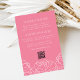 Dieses elegante, blumengeschmückte Brautparty-Design ist ideal für Frühjahr- oder Sommergärten. Die Kontur der Pony-Blume ist in einem hellen rosa Hintergrund dargestellt. Personalisieren Sie diese Registrierungseintragungskarten mit zwei benutzerdefinierten Textfeldern, Ihrem Registrierungslink und einem anpassbaren QR-Code, damit die Gäste leicht scannen können. Geschützt mit Rezeption und Dusche/Geschenkanfrage.