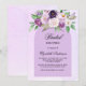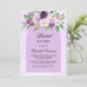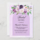 Ein violetter, lavendigerer, wasserfarbener Hintergrund. Mit violetten und violetten Blumen dekoriert. Personalisieren und fügen Sie einen Namen und Party-Details hinzu. Der Name wird mit einem handgeschriebenen Stilskript geschrieben