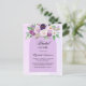 Ein violetter, lavendigerer, wasserfarbener Hintergrund. Mit violetten und violetten Blumen dekoriert. Personalisieren und fügen Sie einen Namen und Party-Details hinzu. Der Name wird mit einem handgeschriebenen Stilskript geschrieben