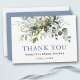 Modernes Elegantes Botanisches Brautparty Grün Die Karte "Danke" beinhaltet Eukalyptus-Blätter, grünes botanisches Blattwerk, staubblaue Blätter und andere wunderschöne botanische Pflanzen. Dusty Blue Back.