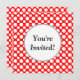 Eine individuelle Brautdusche oder Babydusche mit schlichten weißen Polka-Punkten groß und klein auf einem roten Hintergrund. Klicken Sie auf Anpassen, um Schriftart, Hintergrundfarben und vieles mehr zu ändern, und rettete Sie Ihr Design sogar für später.