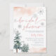Winter Brautdusche Einladung. Rosa und rot mit Pinien und Schneeflocken.