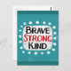 "Brave Strong Kind" ist ein niedliches inspirierendes oder motivierend Zitat mit weißer Akzent-Form, umgeben von weißen, texturierten, weißlichen, weißlichen, weißlichen Punkten.