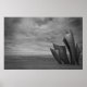 Ein sehr emotionales Bild der Gedenkstätte für die D-Day Landings im Juni 1944 - Les Braves. Diese prächtige Skulptur ist hier in klassisch schwarz-weiß dargestellt, mit den Braves ganz rechts vom landschaftsorientierten Bild mit Sand, Ozean und stürmischer Himmel, die den Rahmen um sie herum füllen