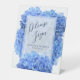 Das Gästebuchzeichen für Hochzeiten. Schöne, blaue Hydrangea-Blume schmücken dieses Schild auf dem Sockel. Weitere Größen sind verfügbar. Personalisieren Sie die Namen des Ehepaares und des Set auf dem Gästebuchtisch. Das schöne hellblaue Blumendesign gehört zur Designlinie von Bravest Blue.