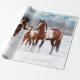 Brawn Bay Pinto Paint Quarter Pferde im Schnee Geschenkpapier