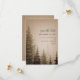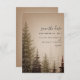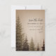 Eine elegante Hochzeit Save the Date mit einer Darstellung immergrüner Bäume auf braunem Hintergrund.