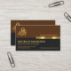 Das Retro-braune und dunkelgraue Design wird durch einen goldenen Streifen in der Nähe der Mitte verstärkt. Diese Goldlinie zu Ihrem Erfolg zu fahren ist der Firmenname. Oben an der links Ecke ist ein goldenes Männerlogo, das Sie benutzen können. Direkt unterhalb des Logos, in der Grauschicht, finden Sie Ihren prestigeträchtigen Namen, Ihren Jobtitel und die Kontaktdaten. Ein Slogan, um Ihre Dienstleistungen zu veröffentlichen, ist an der unteren rechten Ecke vorbei.