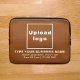Anpassbare Notebookhülle, mit der Sie Markenbewusstsein schaffen. Die Inhalte sind Ihr Firmenlogo, Geschäfts- oder Firmenname, Adresse und Telefonnummer. Das Design ist hellbraune und weiße Texte auf braunem Hintergrund. Bitte Karo des Erscheinungsbildes nach dem Hochladen von Logos und Schriftzeichen. Wenn Ihnen das Aussehen gefällt, können Sie jetzt Ihre Bestellung aufgeben. Wenn Sie das Logo und die Texte ändern und verschieben müssen, um auf diese Laptop-Hülle oder auf andere Größen, die Sie wählen, passen Sie bitte das Design-Tool an. Sie können auch andere Änderungen vornehmen, die Ihren Wünschen entsprechen, z.B. die Änderung der Hintergrundfarbe, der Schriftart und des Schriftartes. Schützen Sie Ihren Laptop und tragen Sie ihn bequem bei, während Sie Ihr Unternehmen werben oder Ihren Markennamen für Ihre Kunden oder Kunden bekannt machen.